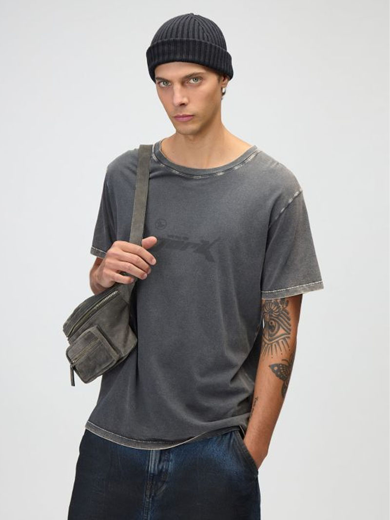 Remera regular fit manga corta con escote redondo. Confeccionada en jersey peinado 100% algodón. Estampa en serigrafía a sobretono en el frente. Proceso de teñido y gastado láser. Este artículo pertenece a la línea rock dentro de los essentials. Industria Argentina