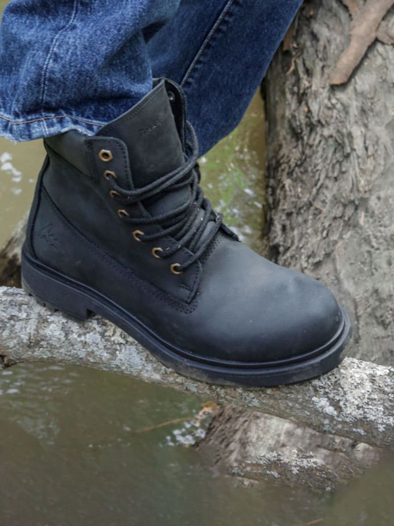 Capellada de CUERO VACUNO, interior forrado en CUERO VACUNO, base de goma sintética, cordones 100% algodón. Cuenta con cueros engrasados de primera calidad y un cuello con latex por dentro para un mejor caminar. Altura Caña 15,5 cm. CUIDADO: Limpiar con un paño húmedo, secar a la sombra, nunca al sol. NO lavar en lavarropas ni mojar por completo.