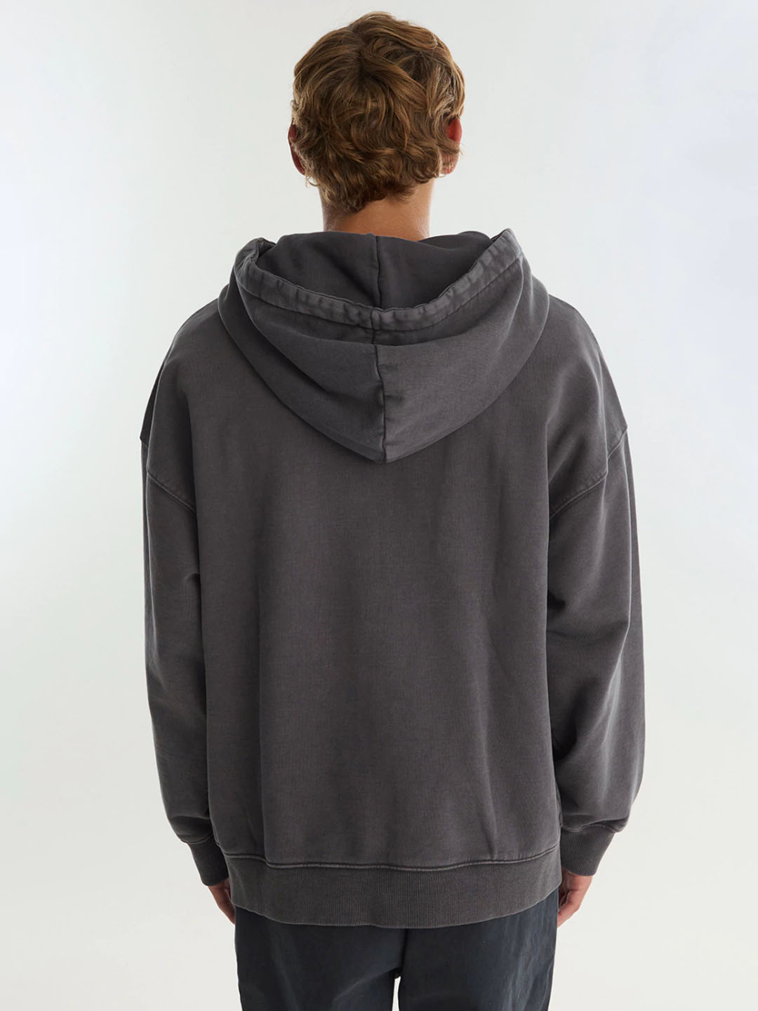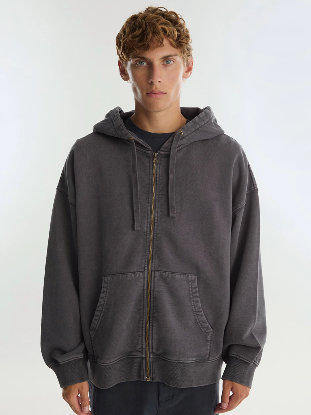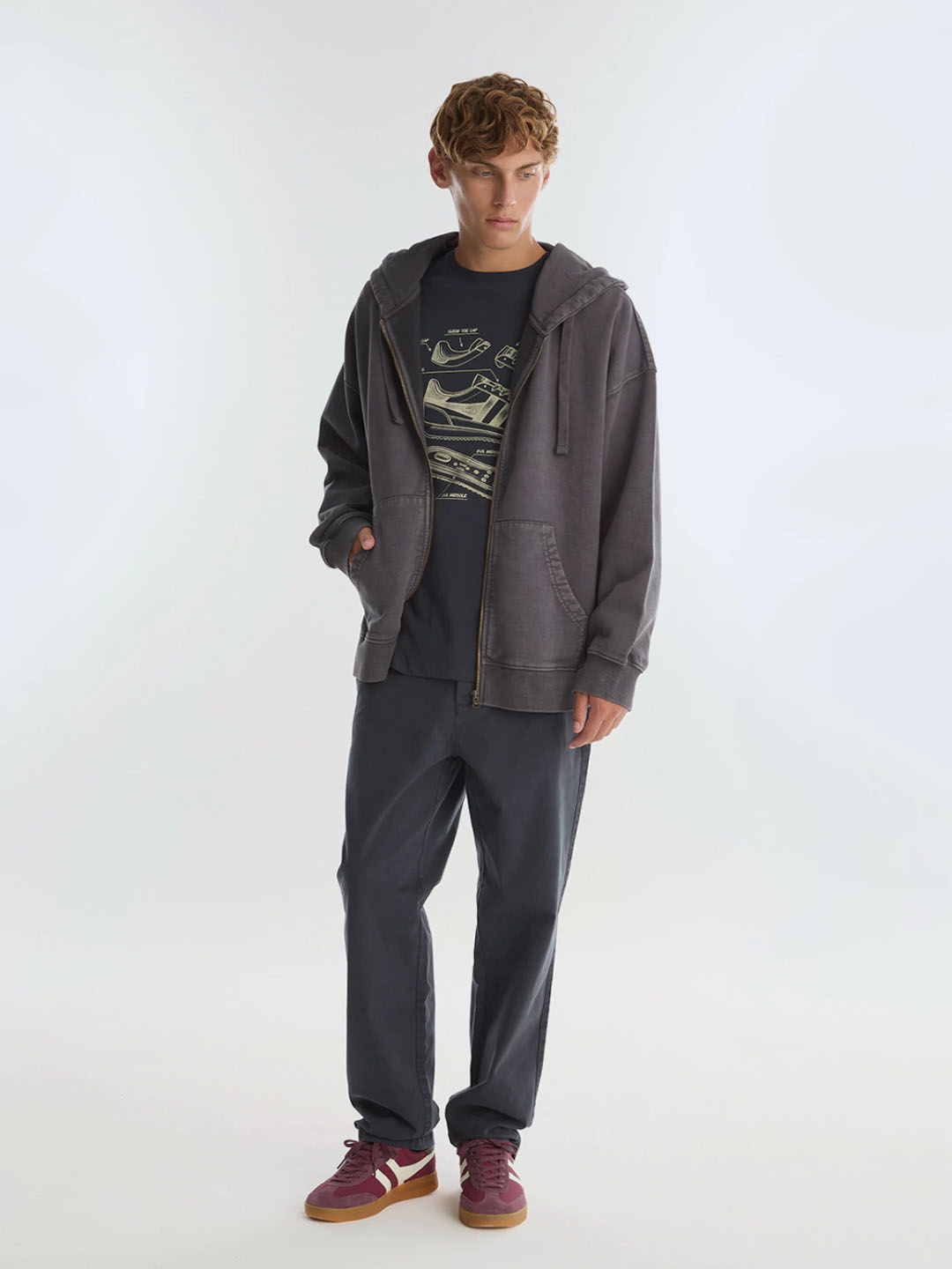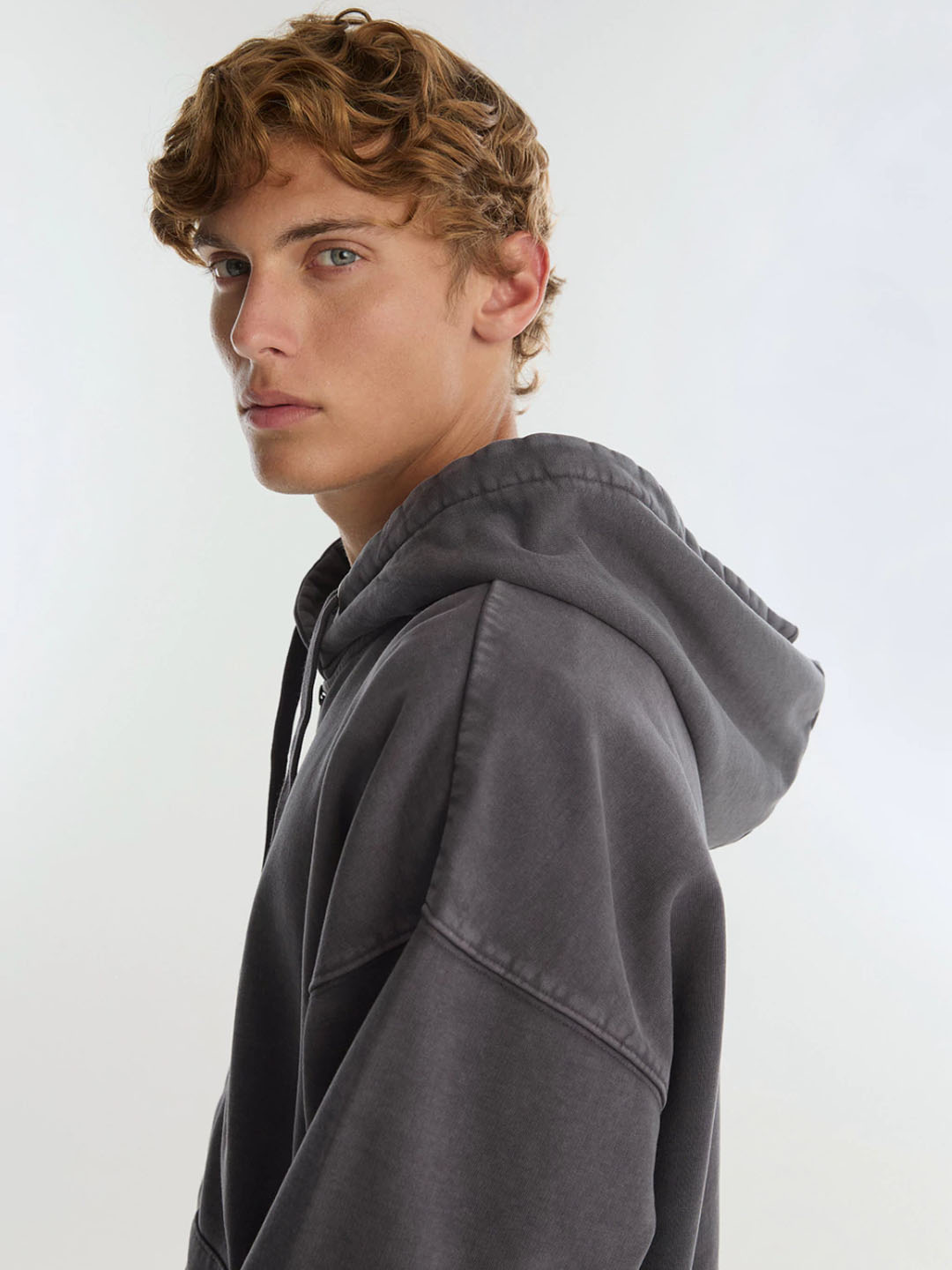 Campera confeccionada en algodón con un lavado especial que le aporta un look gastado. De calce amplio, con cierre frontal y bolsillos. Grifa institucional de la marca tejida en el lateral alta definición.