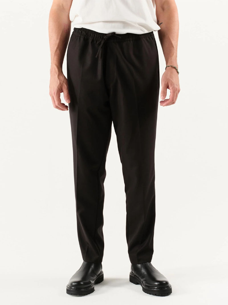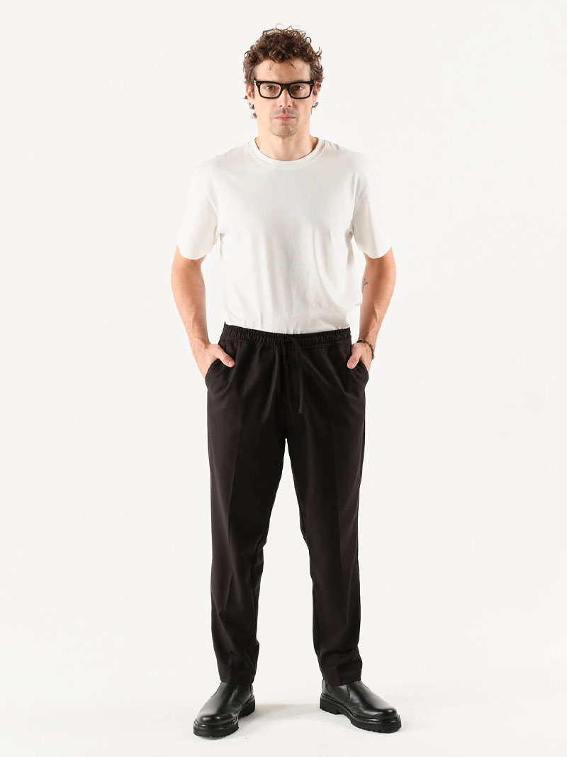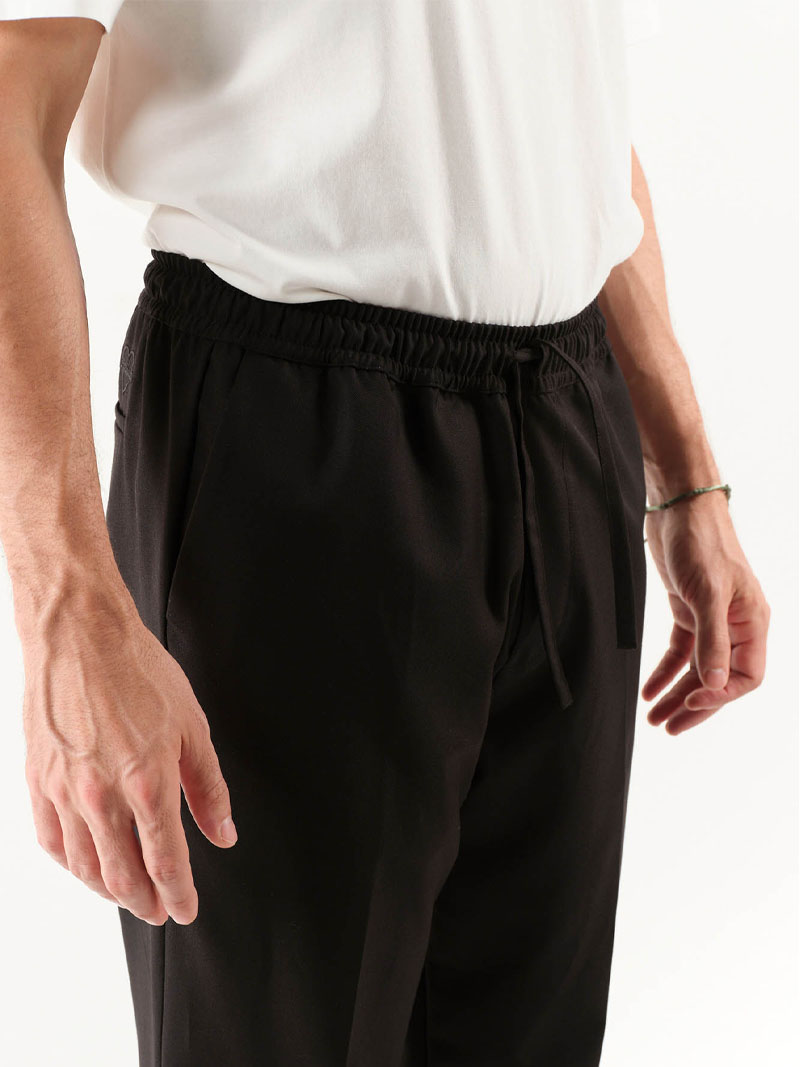 Pantalón de vestir con tela sastrera lisa. Comunicación de marca con bordado bolivia sobre bola de bolsillo espalda. Este prenda no se lava. Nuestro modelo mide 1.85 mts de altura y esta usando talle M. Composición: 70% poliester 30% rayon.