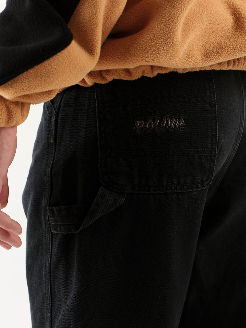 Pantalón de gabardina pesada con pespuntes a tono de la tela. Comunicación de marca con bordado bolivia sobre bolsillo en espalda. Lavado con enzimatico. Nuestro modelo mide 1.85 mts de altura y esta usando talle M. Composición: 100% algodón.