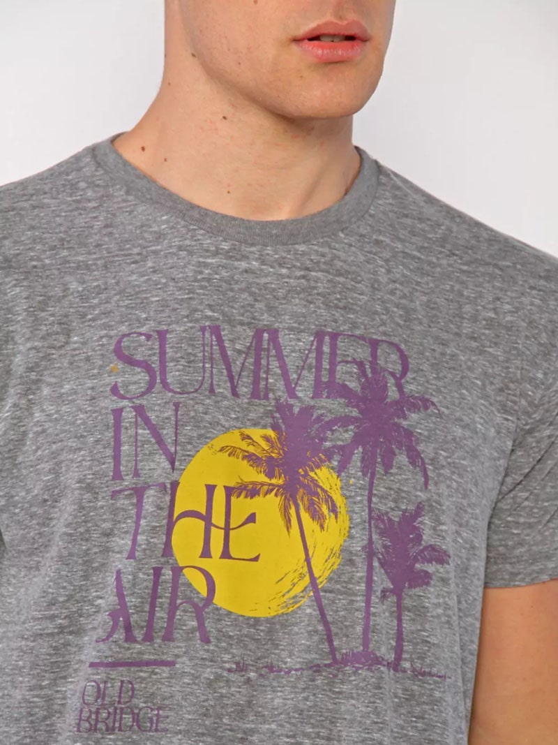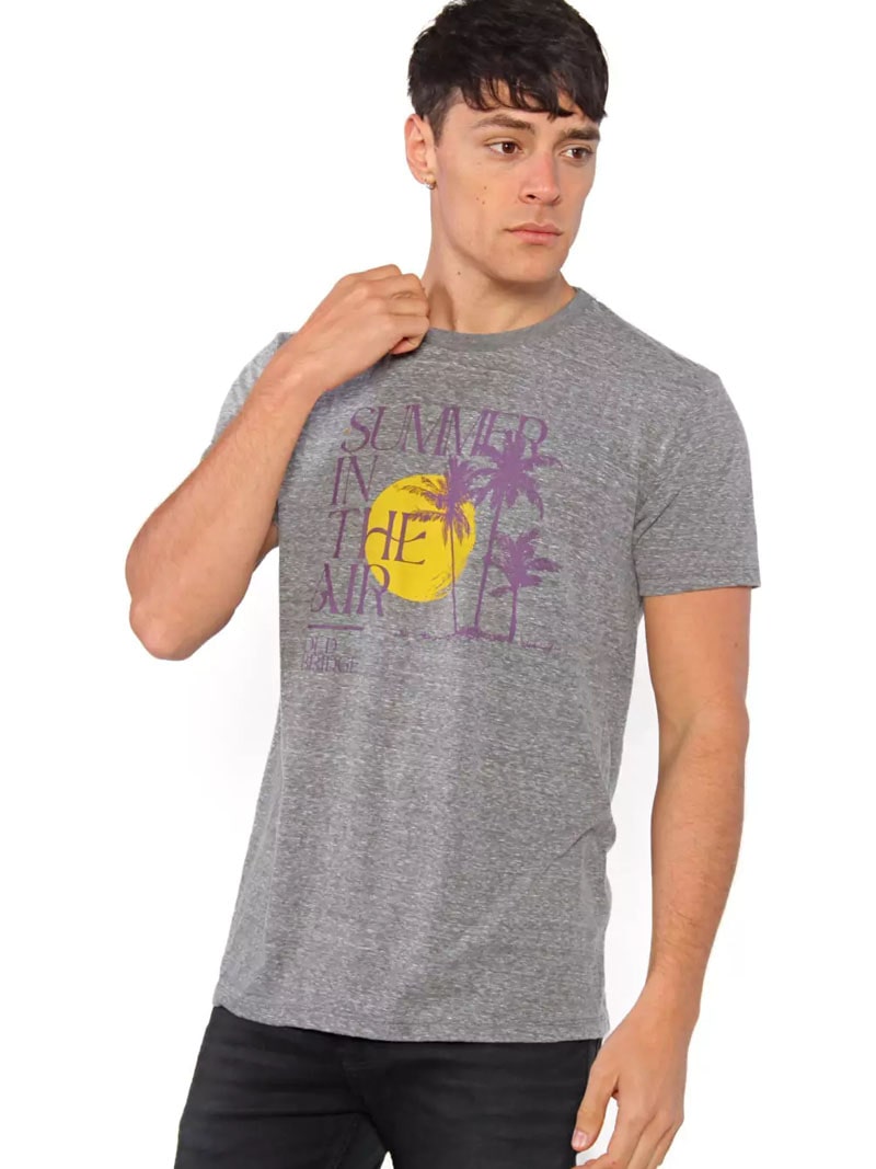 Remera estampada escote redondo, de mangas cortas, con cuello en ribb al tono. Confeccionada en jersey puro algodón. Lleva en frente una estampa sin tacto. Calce regular.