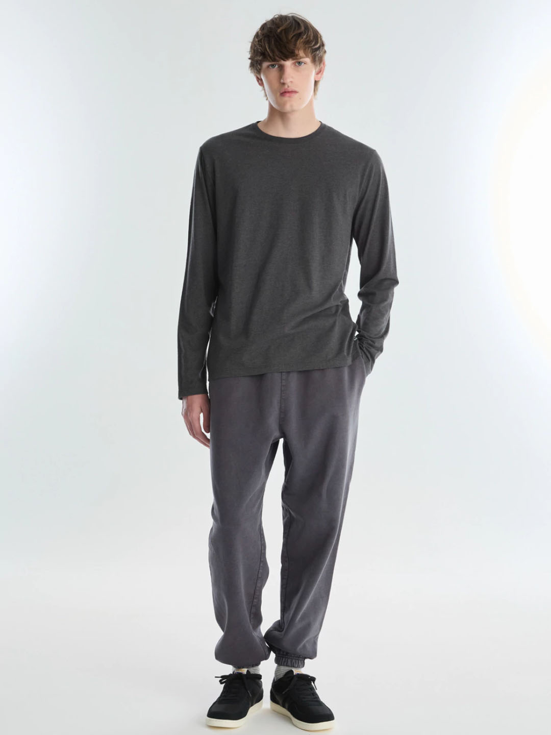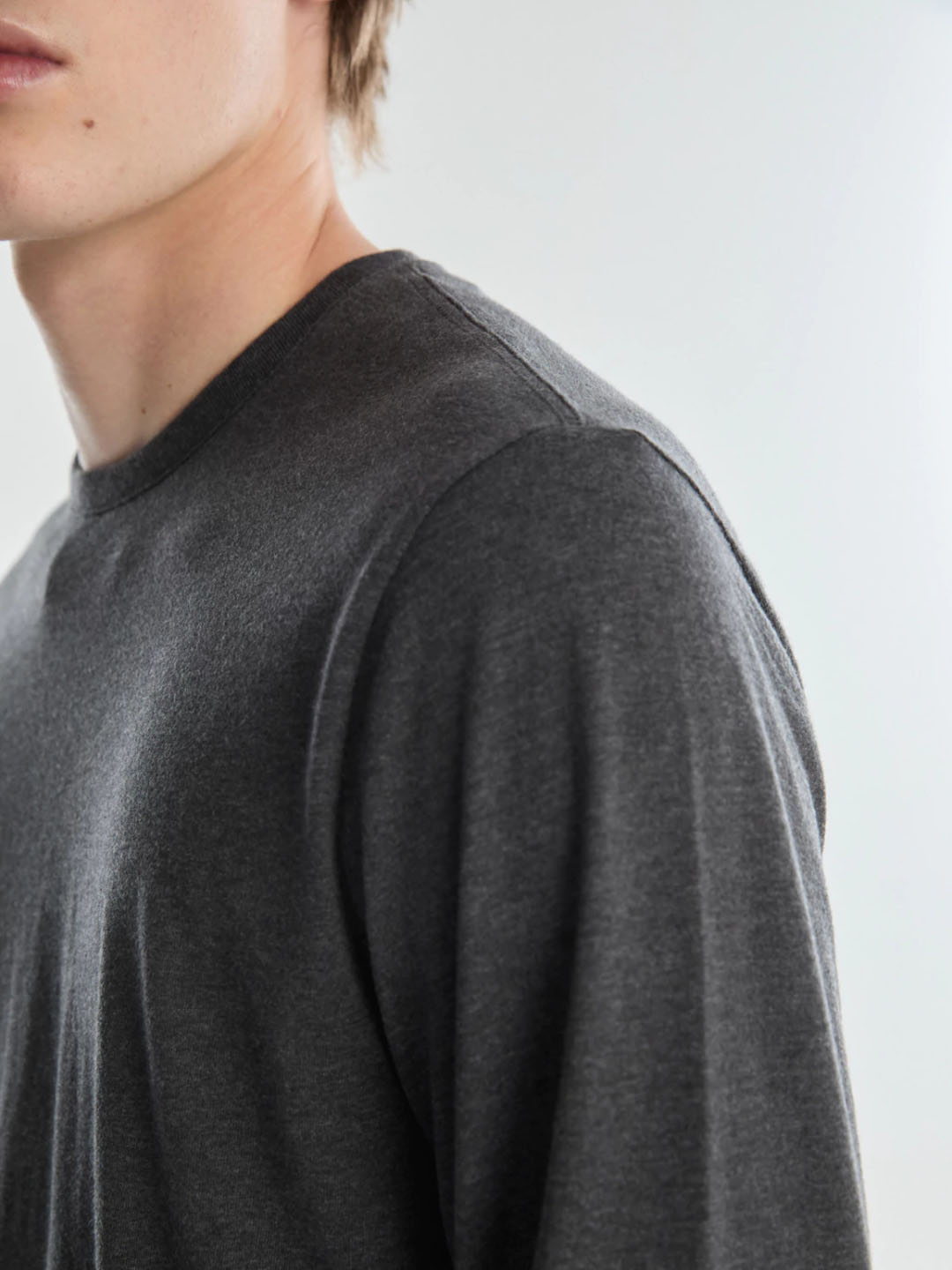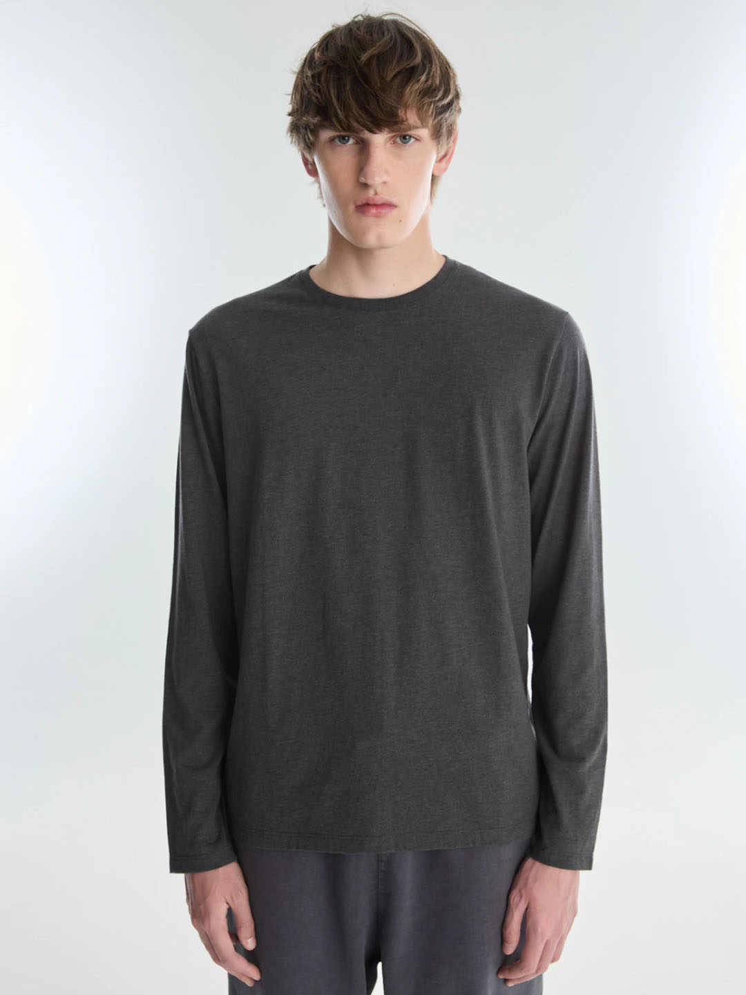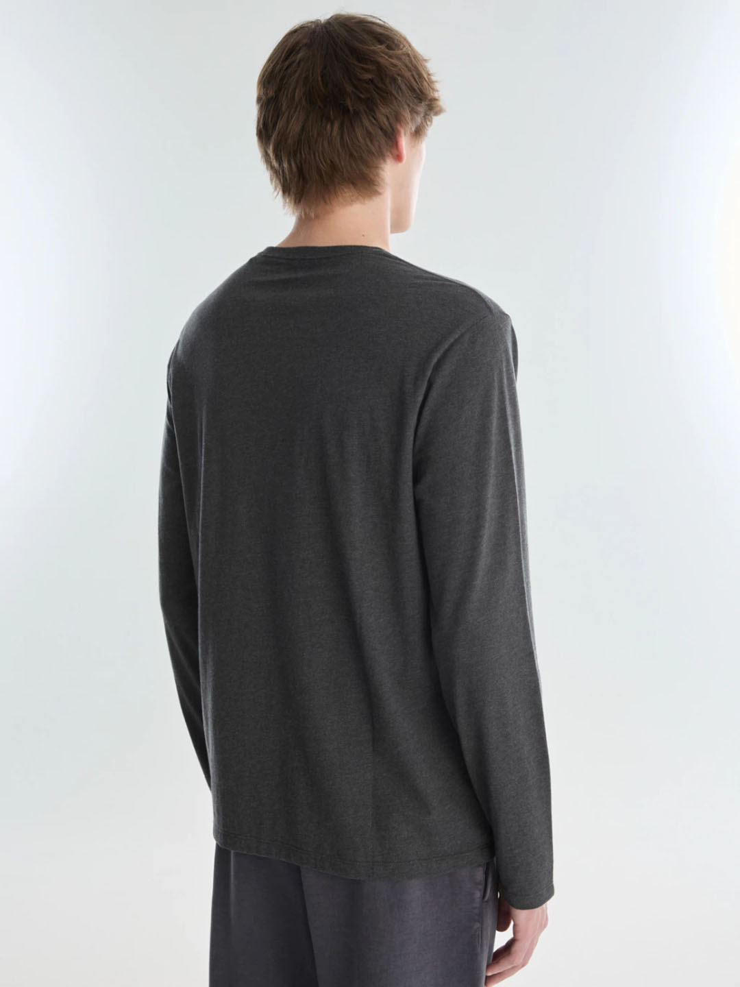 Remera básica cuello redondo manga larga con grifa de la marca tejida en el lateral alta definición.