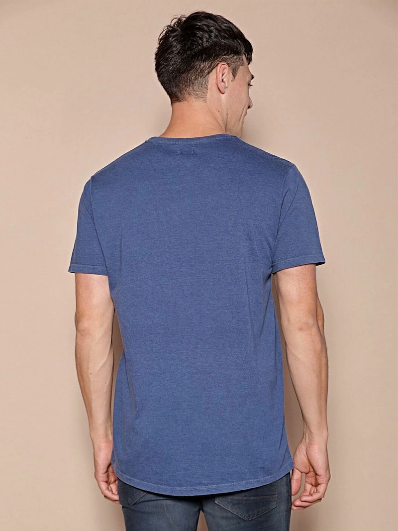 Remera estampada escote redondo, mangas cortas, con cuello ribb al tono. Confeccionada en jersey puro algodón. Tiene un proceso de lavado artesanal marmolado. En el frente cuenta con una estampa sin tacto y un bordado. Calce regular.