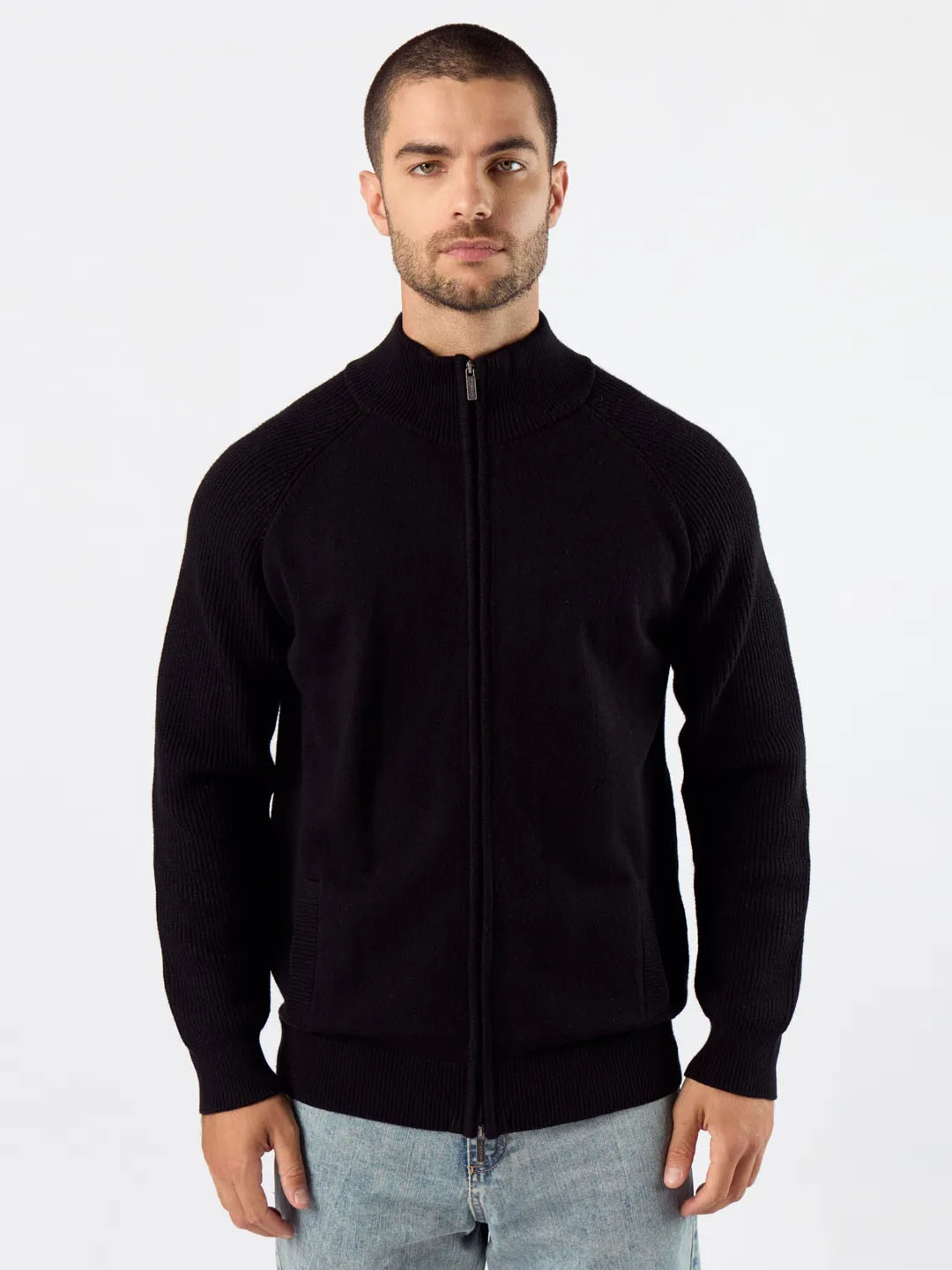 Campera tejida premium importada con cuello alto, manga larga. cierre metálico con tiracierre personalizado. en la espalda tiene un gofrado en la parte superior con logo de la marca. bolsillos en laterales delanteros. acabados en rib. chapita de comunicación cosida en delantero.